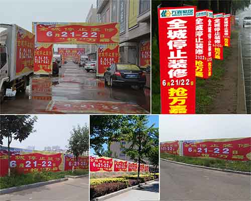 我们运营中心的团队,忙前顾后,加班加点,全力以赴搞好“万嘉家居首届建材节”。我们的条幅,一夜之间遍布在迁安市区的每个路口和重要节点。
